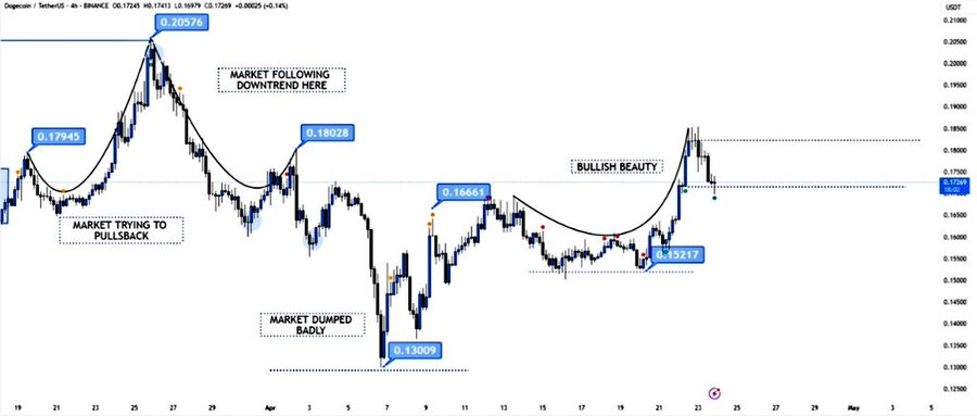 Technical analyst BitGuru highlights a rounded bottom formation on the 4-hour chart, preceding DOGE's rise from $0.15217 to a high near $0.179. This pattern, along with other technical indicators, suggests early recovery structures.