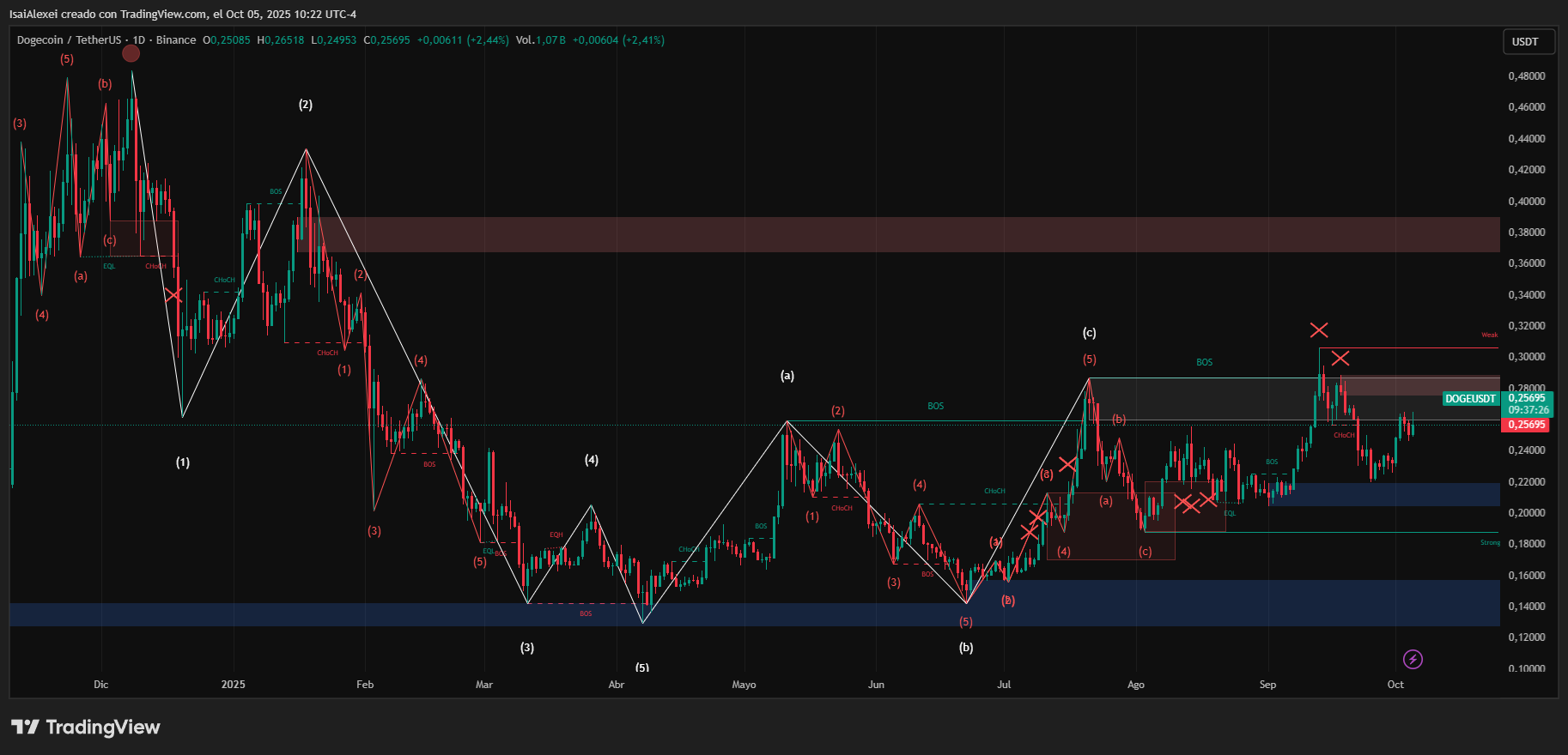 The “Net Unrealized Profit and Loss” (NUPL) metric indicates firm support between $0.23 and $0.25, as many holders who bought at higher levels have held through losses and are now returning to profit. With the current price at $0.26, Dogecoin has established several higher lows, and bulls are beginning to structure positions for an anticipated move to $0.30.