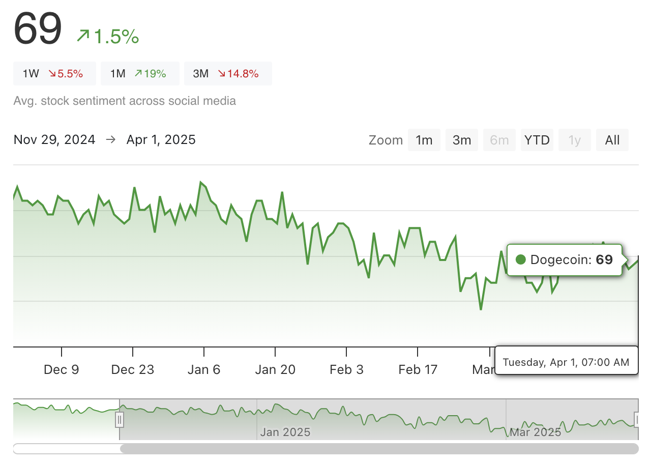 The recent news regarding government non-adoption has dampened some of the hype surrounding Dogecoin. While trader sentiment remains above its 30-day moving average, a broader market correction could negatively impact it. However, ongoing accumulation by whales, particularly those holding between 1 and 10 million DOGE tokens, who added 220 million coins to their portfolios in March, could provide bullish support.
