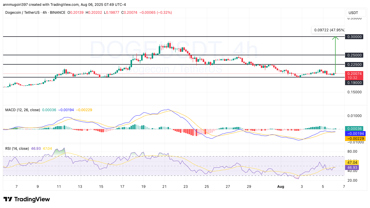 Dogecoin (DOGE) has demonstrated remarkable resilience amid recent bearish market pressures, consistently finding support above the critical $0.20 mark. Even with brief dips below this level, the cryptocurrency continues to garner bullish attention as investors eagerly anticipate signs of a potential recovery. While struggling to regain significant upward momentum over the past 24 hours, Dogecoin has successfully rebounded from key support around $0.18.