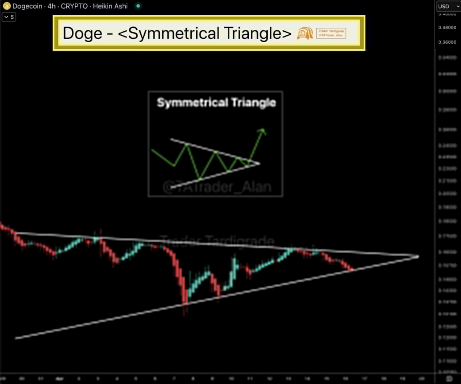 Currently, the confluence of high long positions, a symmetrical triangle pattern, and the Long/Short ratio suggests a potential for a significant price increase in Dogecoin.