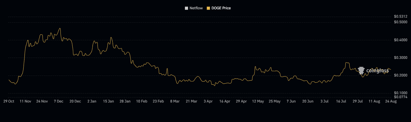 Background data show Dogecoin rallied from $0.08 to $0.50 before correcting sharply. The subsequent months brought a distribution phase and heavy profit-taking. Market action then stabilized as consolidation held above $0.15.
