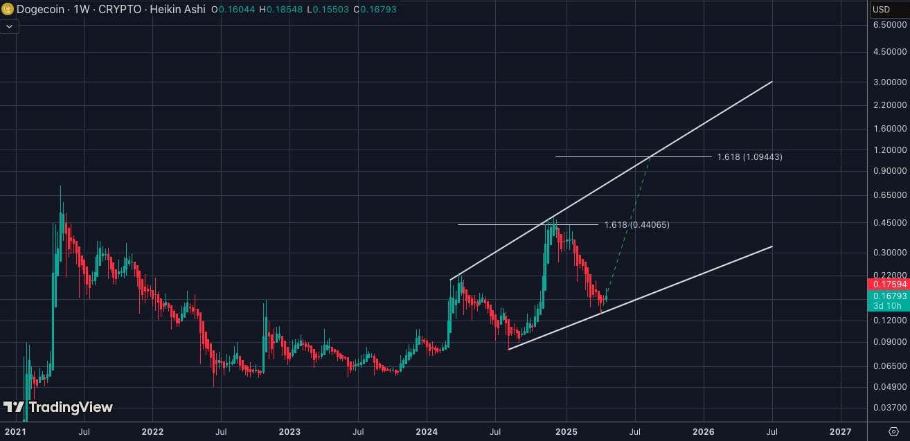 Kamran Asghar also reported on X that Dogecoin has formed a bull flag, with a potential breakout pushing DOGE towards $0.22. Furthermore, Master Kenobi projected that successful consolidation could propel Dogecoin to $0.90 within 55 days.
