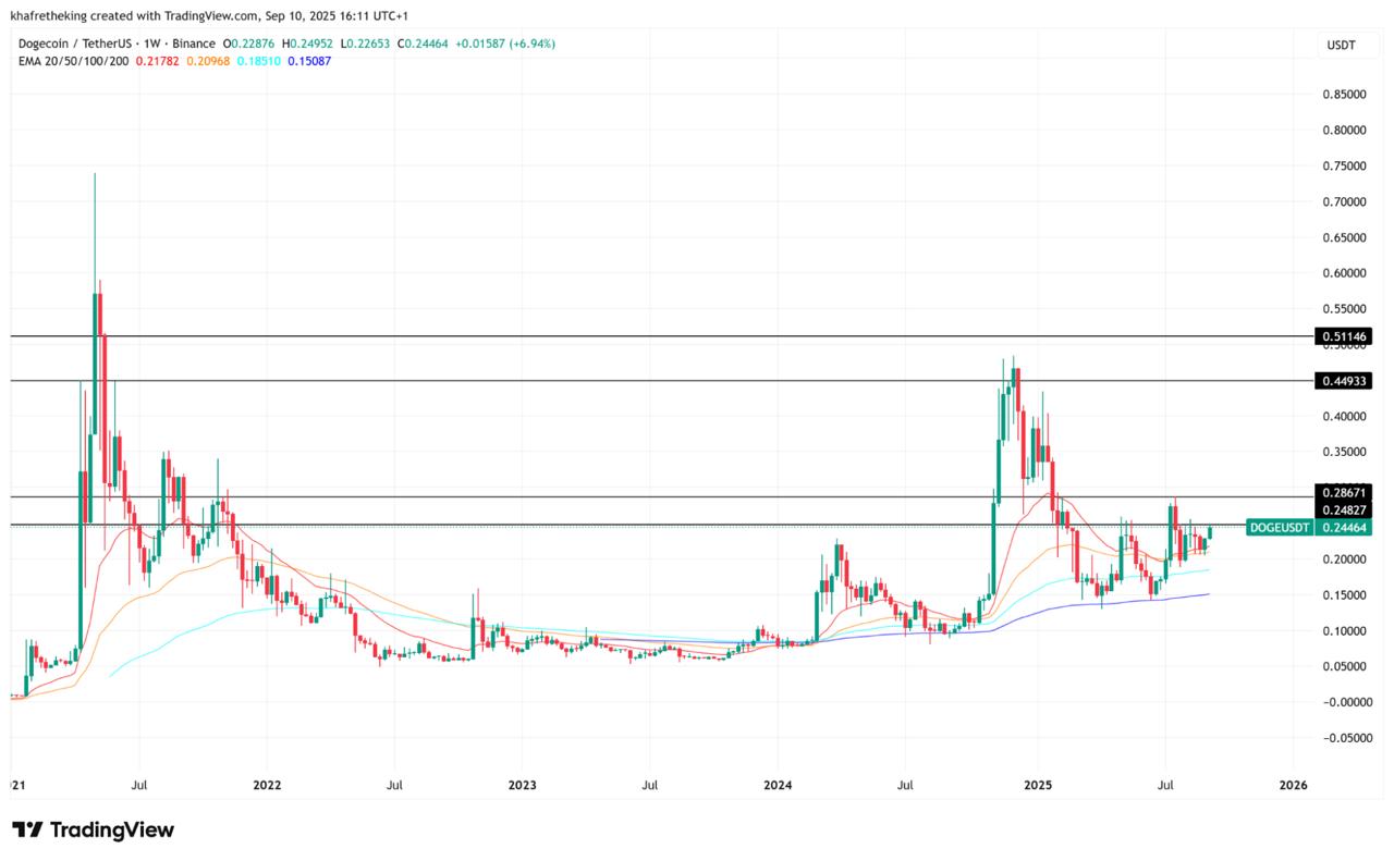 According to top players, the September 9 approval for the Dogecoin ETF is a critical catalyst that could see DOGE hitting $1 soon. After about 6 months trading below $0.28, experts now believe the Dogecoin price is heading for a significant recovery.
