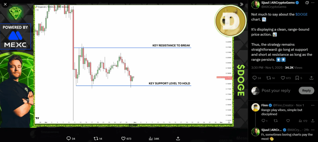 According to crypto trader “Sjuul”, Dogecoin’s pattern between October 11th and November 1st was a “clean range-bound price action.”
