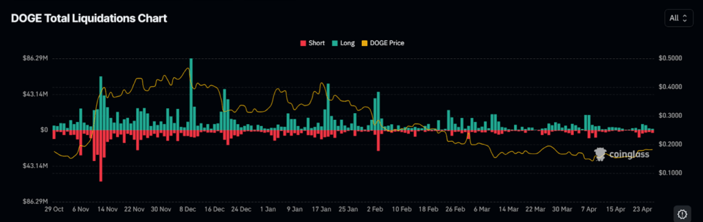 After a period of consolidation, DOGE has traded above key moving averages and broken through a significant resistance trendline. Reduced leverage, as indicated by liquidation data, suggests the potential for increased volatility. Historical patterns following similar setups indicate the possibility of a strong rally, with many anticipating a price push towards $0.65 and beyond.