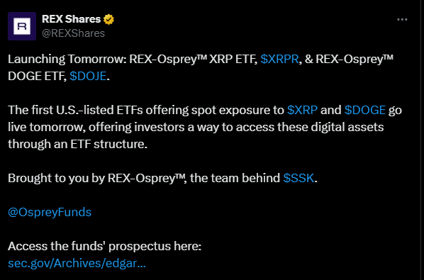 He wrote, “DOGE becomes the first memecoin with its own ETF on Wall Street,” uplifting its status to a more seriously considered crypto and not just a simple meme token.