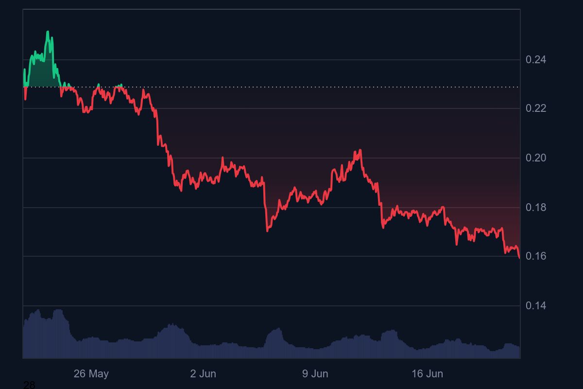 If the current bearish pressure persists and the $0.159 support level is decisively broken, Dogecoin could potentially target: