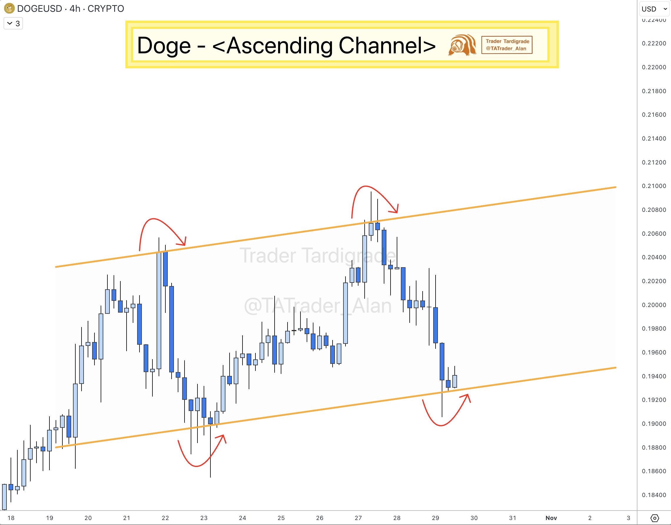 On the four-hour chart, the analyst identified an ascending channel pattern, showing the coin trading near the lower boundary of the channel. This technical position often acts as a potential support area, where buying pressure may emerge if the pattern holds.