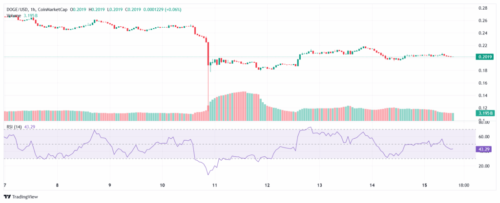 DOGE price today was up more than 2.6% and traded at $0.201, and its trading volume fell 37% to $3.19 billion. The crypto has touched a 24-hour high of $0.208, while soaring from a one-day low of $0.1956.