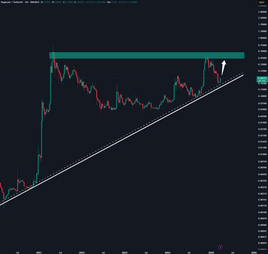 Meanwhile, AMCryptoAlex highlighted a retest of DOGE's long-term support trendline, describing it as "a vital technical occurrence" historically associated with significant rallies.