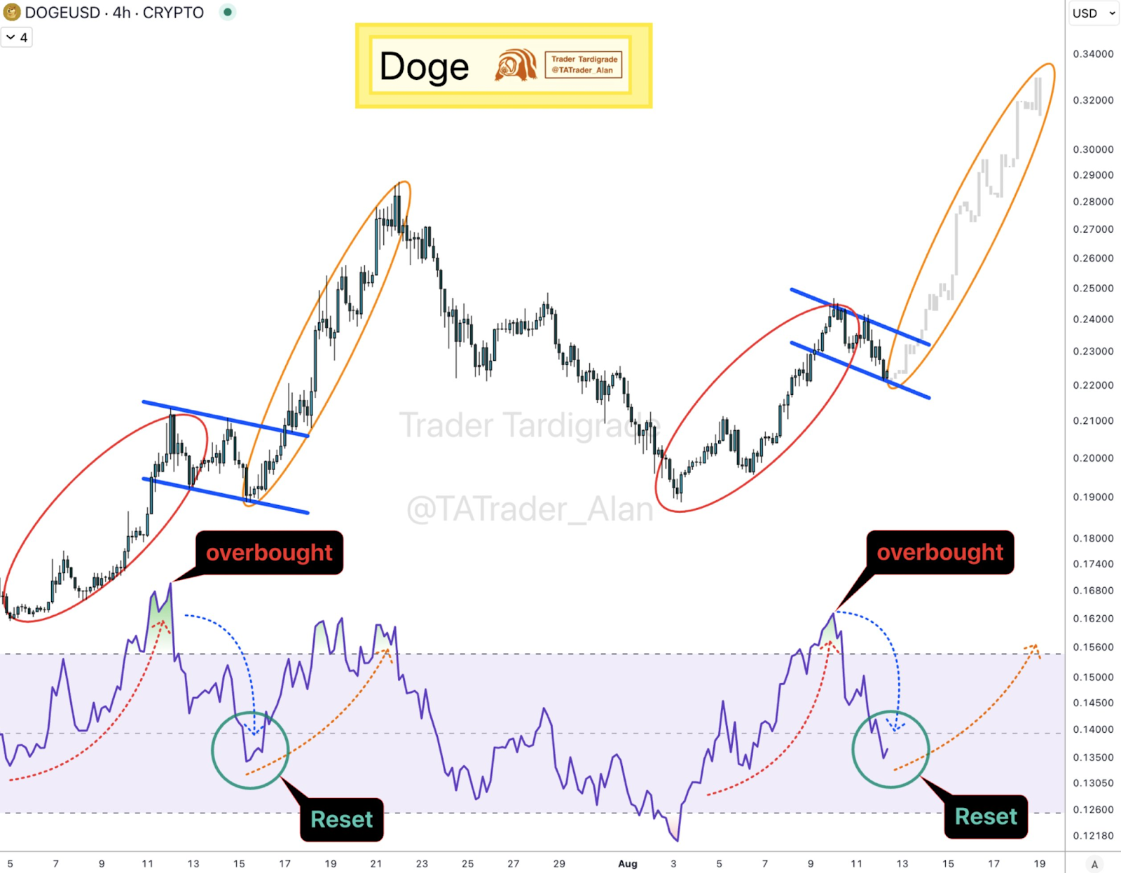 Further analysis from Trader Tardigrade indicates a correction in Dogecoin's Relative Strength Index (RSI), which recently dipped below 50. This suggests a reset from previously overbought conditions. Technical analysis generally views such resets favorably, as they can allow an asset to regain strength for a potential rally. This reset may provide Dogecoin with the momentum needed for a renewed upward surge.