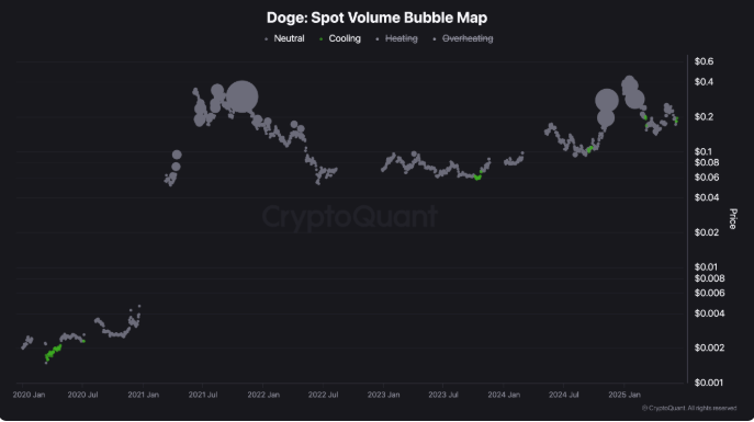On-chain analytics from CryptoQuant indicate that Dogecoin's recent price bottom aligned with a cooling phase in spot trading volume. A volume analysis indicated positive signals, suggesting that accumulation occurred at relatively moderate trading levels. These conditions can often precede price movements, as more holders become exposed when market activity is still subdued.