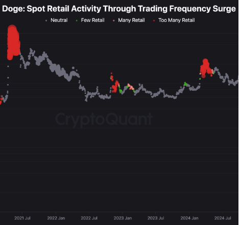Despite Dogecoin's recent price increase, data suggests that retail investor interest remains limited. A CryptoQuant chart tracking trading frequency by retail-sized accounts showed few instances of high activity, which have historically signaled increased retail participation. The absence of these indicators suggests that individual investors have yet to re-enter the market in significant numbers.