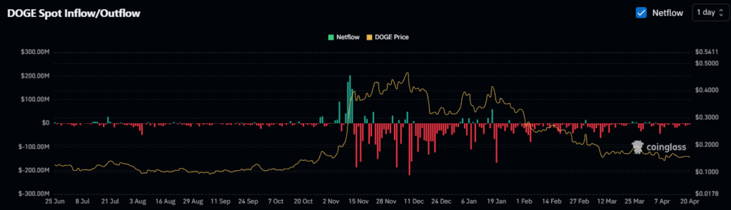 Several indicators suggest DOGE might regain bullish momentum. For example, the Money Flow Index (MFI) showed upward movement over the weekend, indicating increased liquidity flow into DOGE. Additionally, spot outflows last week decreased to levels last seen in late October 2024.