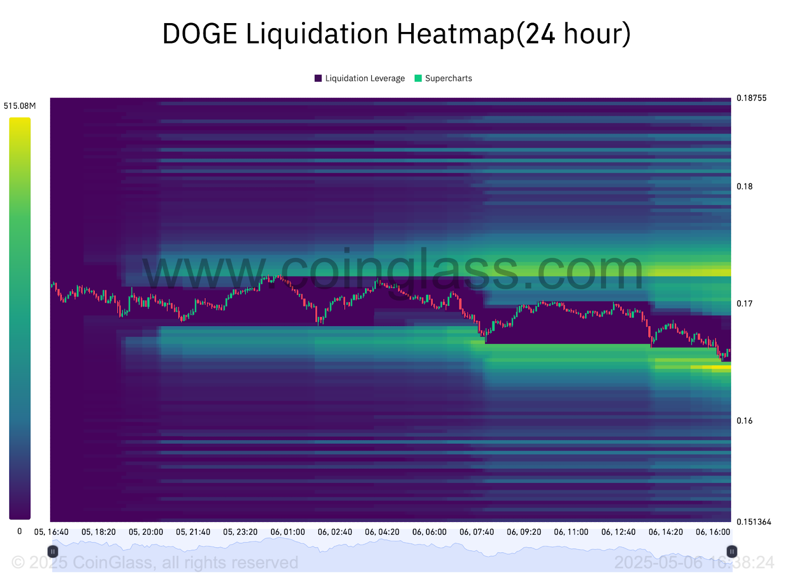 Therefore, DOGE is expected to test support near $0.162 (below the $0.164 liquidation level). This could trigger short liquidations and a subsequent upswing, potentially reaching $0.18 initially, and possibly $0.2 later.