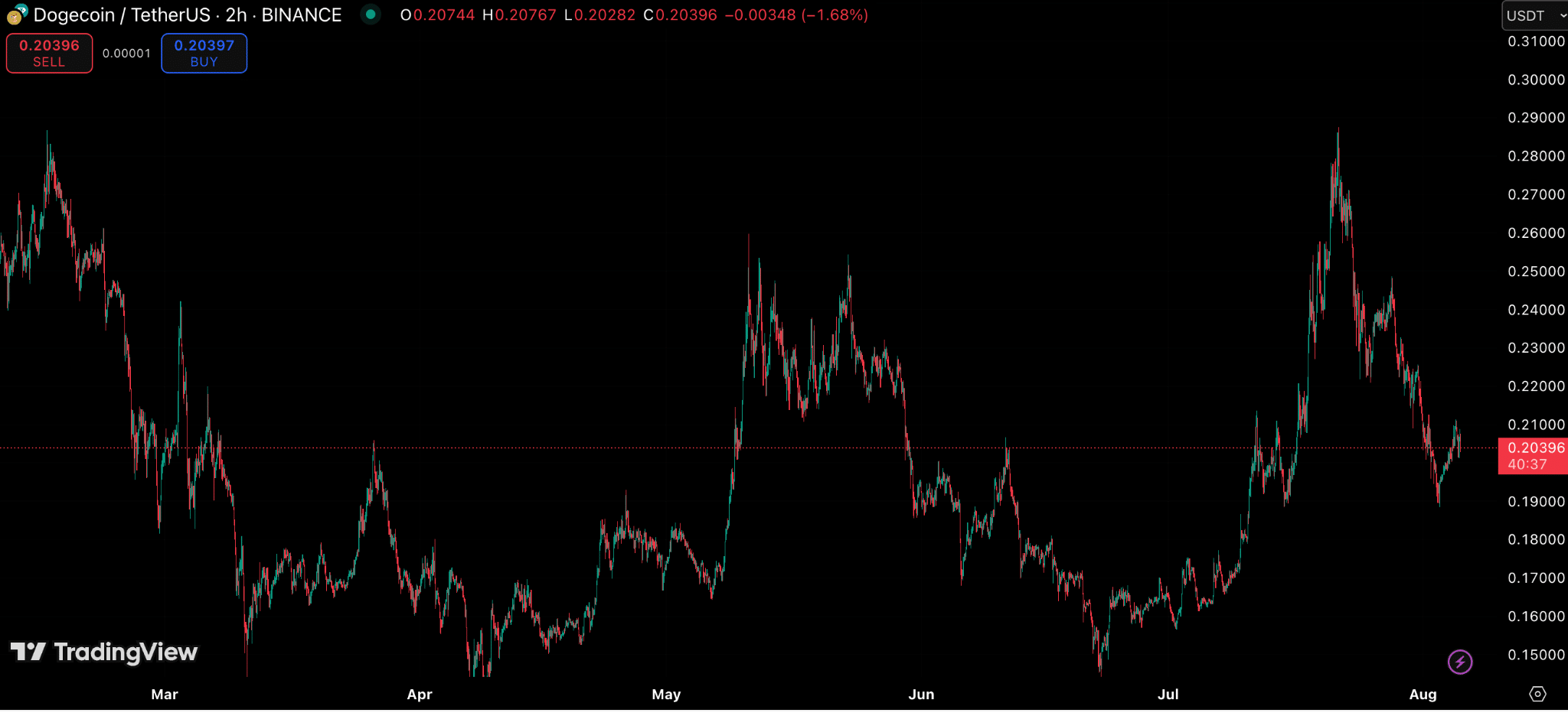 Dogecoin (DOGE), the pioneering meme coin, is once again capturing attention as traders assess its long-term viability amidst a broader altcoin resurgence. Currently trading around $0.2035, DOGE exhibits signs of stabilization following a period of volatility. This current pattern has led some analysts to anticipate a potential breakout, particularly if capital continues to shift from established cryptocurrencies like Bitcoin and Ethereum into more speculative altcoins.