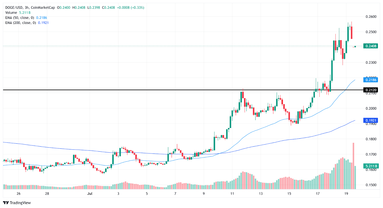 The basis for this optimistic Dogecoin price prediction lies in its recent breakthrough above $0.21, signaling renewed bullish momentum.