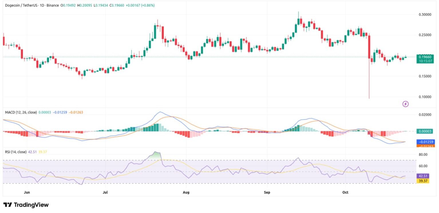 DOGE is currently trading at approximately $0.196, with indications of consistent accumulation and initial momentum recovery. On volume validation of a breakout above the resistance, the token price could surge. However, long-term growth will depend on sentiment in the market and the trend direction of Bitcoin. On the whole, technicals indicate that the asset is about to take a bigger shift in the next months.