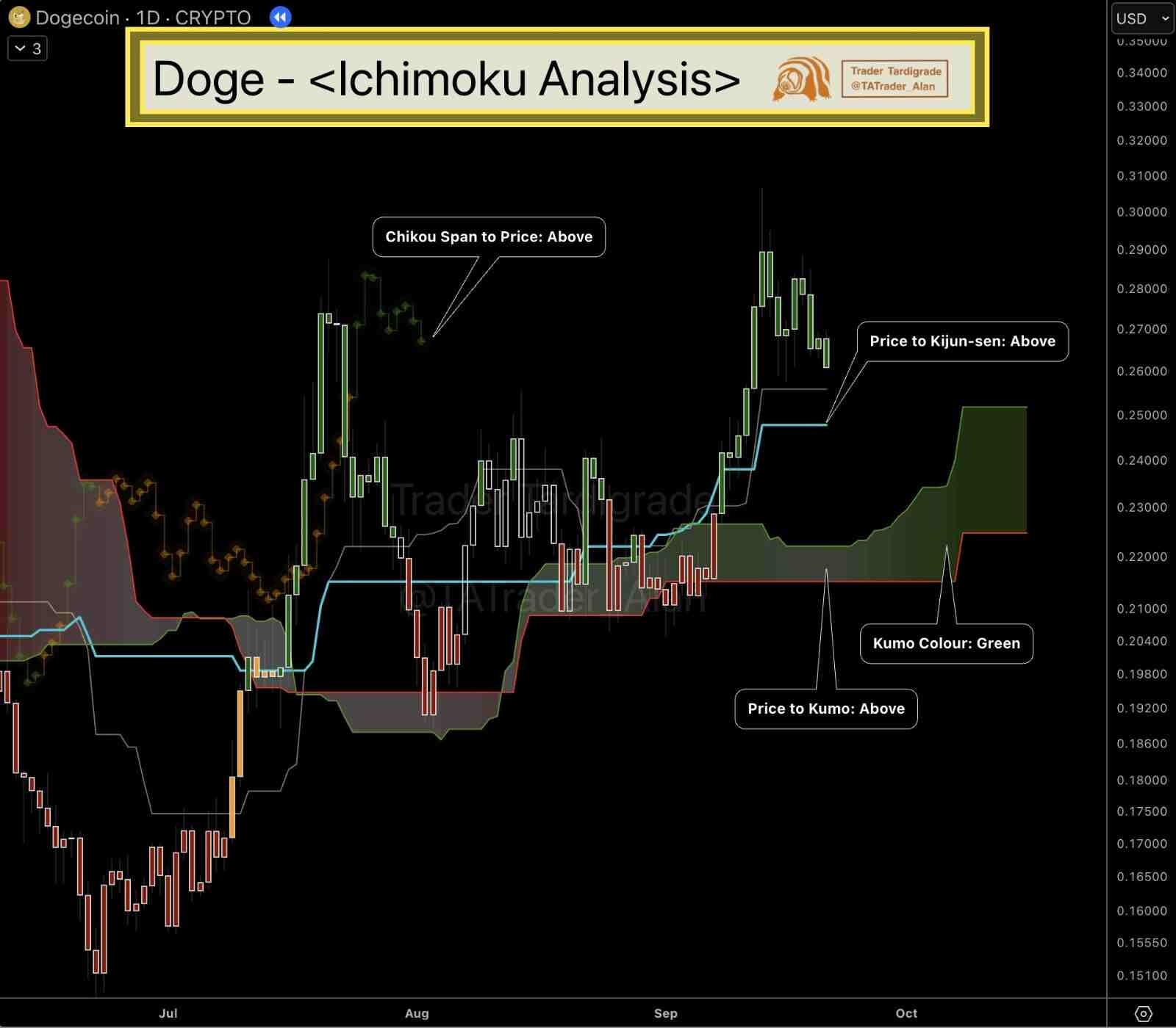 Dogecoin price is in the spotlight of analysts with many predicting the meme coin could breakout to reach a new level of $0.30. Following the months of consolidation, the asset is at last starting to exhibit signs of strength that echo the previous cycles. Both long-term trendline formations and short-term Ichimoku pointing to the bullish may indicate the next major move for DOGE.