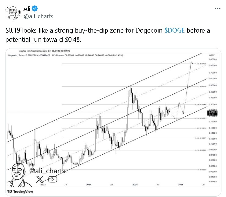 Year-End Dogecoin Forecast: Looking toward the end of 2025, if the coin buyers stay active around the $0.19 support level, the price could hover near $0.24 to $0.25. If excitement around meme coins grows or the market strengthens, DOGE has the potential to rise further, possibly reaching between $0.30 and $0.36.