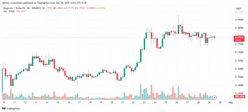 Dogecoin's 4-hour chart reveals an ascending triangle pattern forming since approximately April 12th. Buyers have steadily raised the lows from the $0.14 mark, while sellers have repeatedly entered around the $0.165 to $0.18 range, creating a tightening structure indicative of an impending breakout. The decreasing trading volume during this consolidation phase further strengthens the possibility of a near-term breakout. The RSI is around 55, indicating further upside potential before reaching overbought conditions. The MACD is currently flat; however, increased buying pressure could trigger a bullish crossover. These factors suggest a potential breakout in early May.