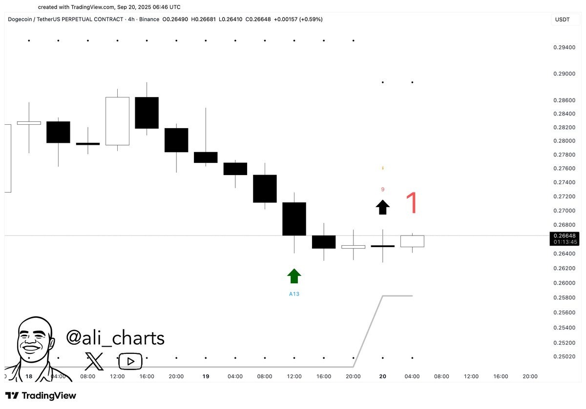 In addition, the opinion is supported by another 4-hour chart by analyst Ali Martinez. According to Martinez, the TD Sequential buy signal at approximately $0.2664 was prone to depicting diminishing selling power, which is generally an indicator of extreme rebounds. A bullish reversal would be realized should the push surpassing the level of $0.2720 be reached, where the meme coin would get the opportunity to revisit the higher levels of resistance, especially in the zone of $0.34-$0.37.