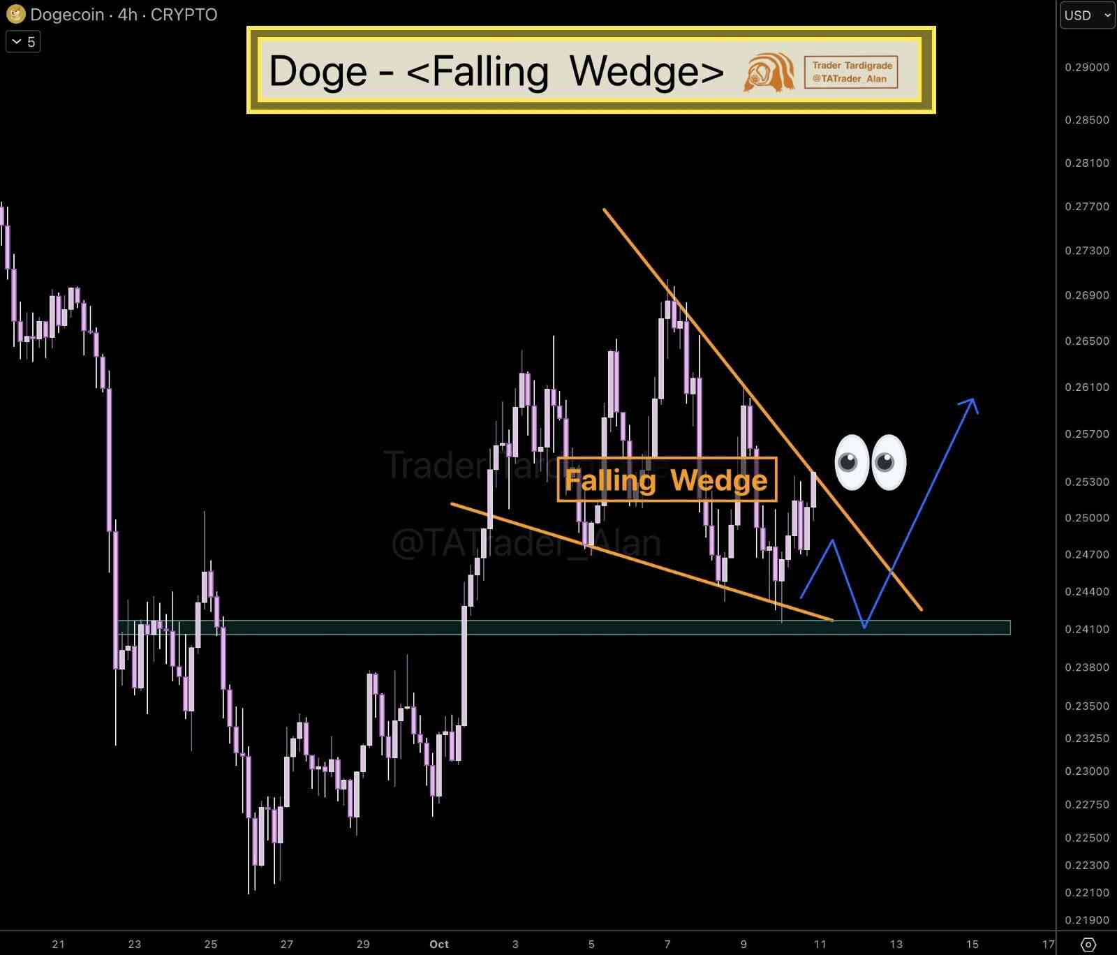 Conversely, the falling wedge pattern identified by analyst Trader Tardigrade suggested a decrease in bearish pressure, indicating that buyers could regain control. The support zone of $0.241-$0.244 is crucial as repeated rejections show a high level of demand. A confirmed break of the wedge resistance could lead to a price increase to the $0.257-$0.265 zone, marking the first stage of a recovery.