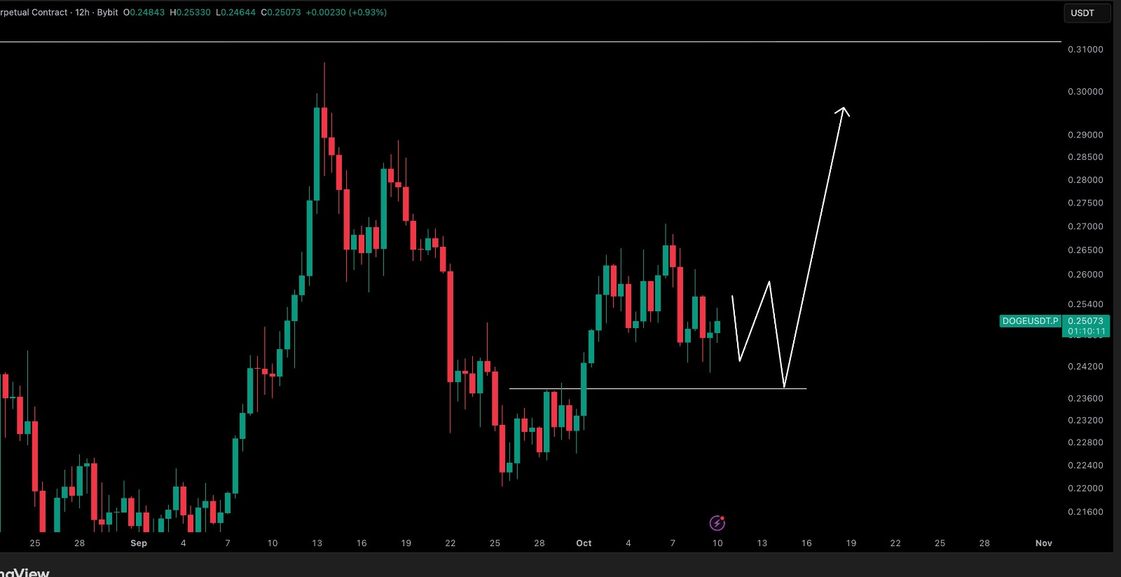 Meanwhile, analyst Crypto Tony pointed out that the market is forming a double-bottom structure at the mark of $0.23. The analyst suggested that this zone could be briefly tested by the asset before an upward leg takes the token to a higher level between $0.29 and $0.31. This would confirm accumulation is building while accelerating momentum on an extended uptrend, particularly if the move is accompanied by volume surges.