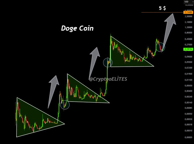 CryptoELITES' fractal pattern analysis, based on historical sharp rallies following triangle patterns, suggests a potential target of $5 for DOGE. While significant catalysts would be needed to reach this level, it reflects bullish sentiment. Currently trading sideways near $0.17, a break above $0.1850 could initiate a new upward trend. Overall, positive technical indicators and favorable market structure support a bullish outlook for DOGE.