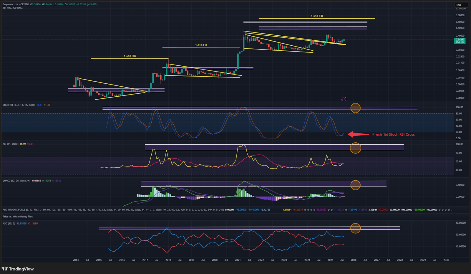 Based on this analysis, Dogecoin is anticipated to experience its most significant swing of this cycle, aligning with the behavior of other altcoins in past early-stage bull markets.