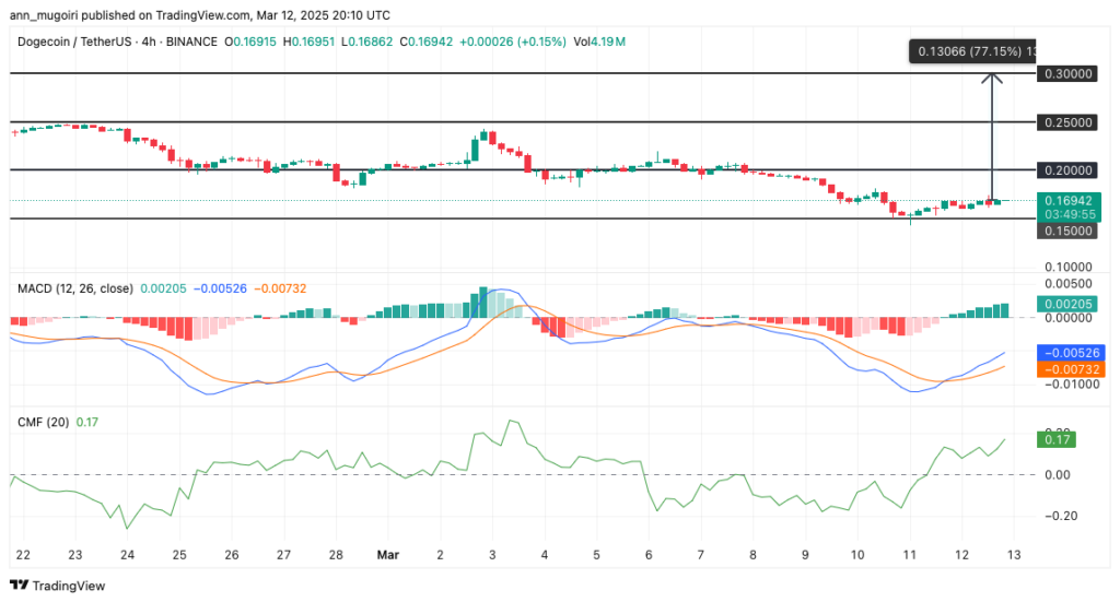 Dogecoin recently reached a low of $0.1598 before recovering. The price remains within key levels that have historically influenced market trends. Analysts suggest that increased accumulation and adoption typically lead to higher valuations. A sustained bullish trend could potentially result in a 77% price surge for Dogecoin.