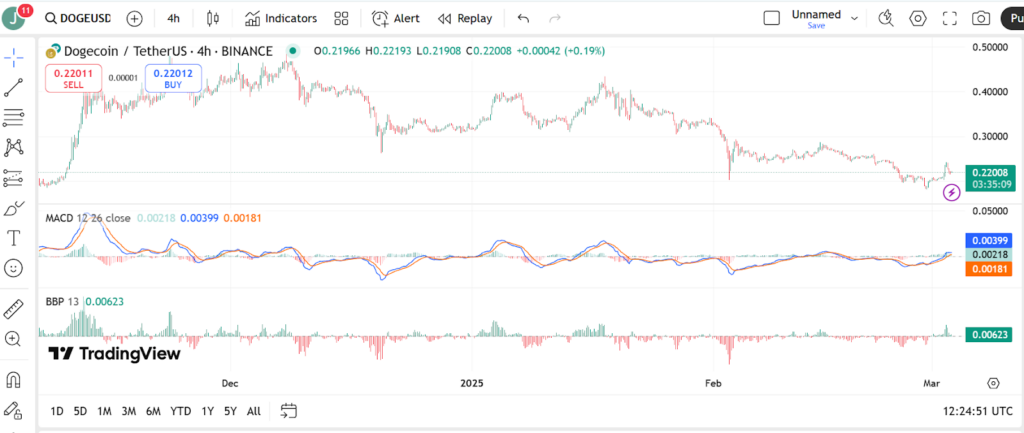 The Bull Bear Power (BBP) indicator, measuring buyer versus seller strength, also displays positive signs. A rising BBP indicates buyer dominance, potentially leading to further price increases. The combined bullish signals from MACD and BBP suggest Dogecoin could maintain its upward trajectory if market conditions remain supportive.