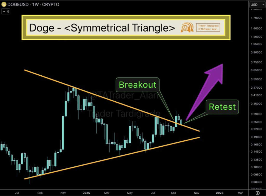 Dogecoin has always been one of the most unpredictable assets in the crypto market, but its resilience continues to surprise traders. After months of consolidating in a tightening range, DOGE price has now tested and broken out of a key technical formation. The move has sparked fresh interest as the coin shows signs of repeating past explosive runs that often began with similar setups.