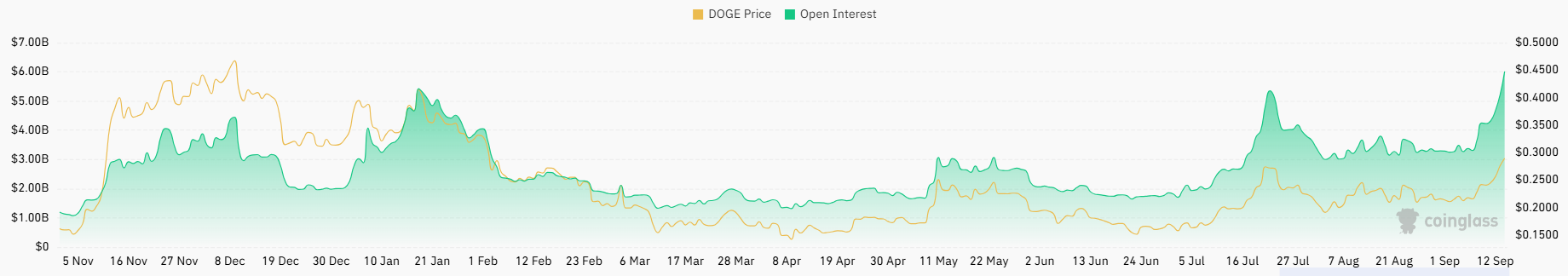 Behind this analysis, derivatives data also shows quite busy activity. According to CoinGlass, DOGE trading volume surged 25.71% to $17.58 billion. Open interest also saw a slight increase of 0.23% to $6.10 billion. Interestingly, DOGE options volume actually plummeted by more than 89%, dropping to $371,000, even though open interest in options contracts rose 6% to $4.51 million.