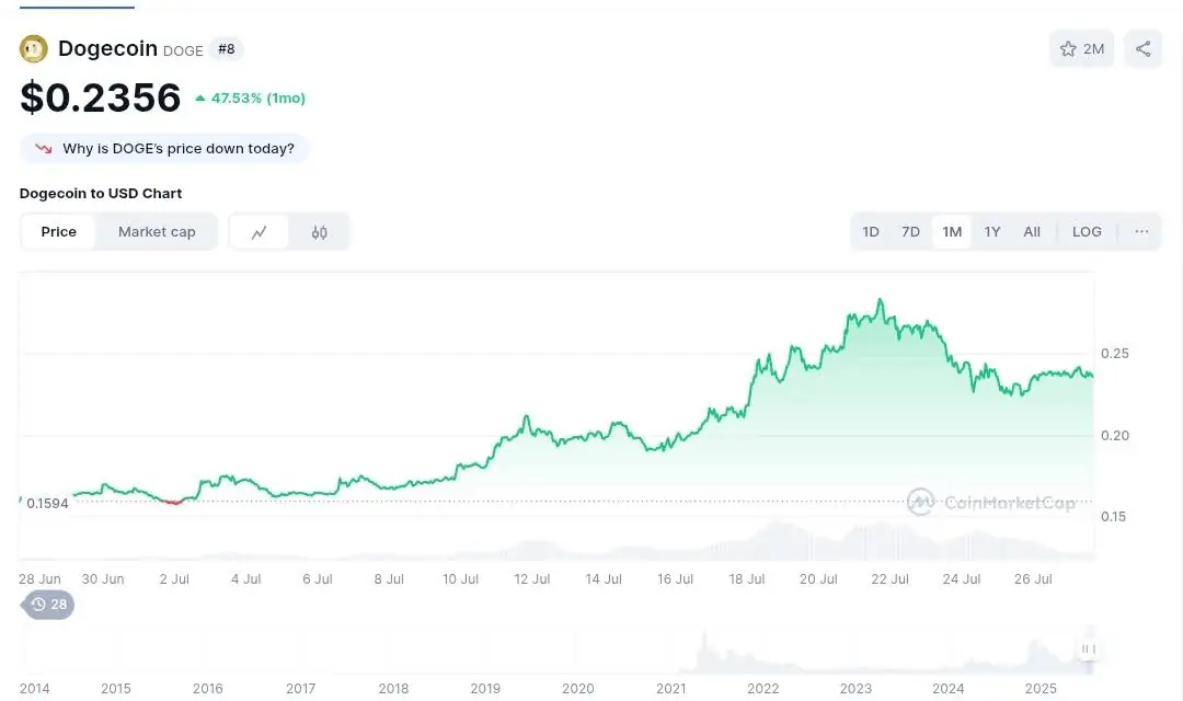 Chart showing the price of Dogecoin