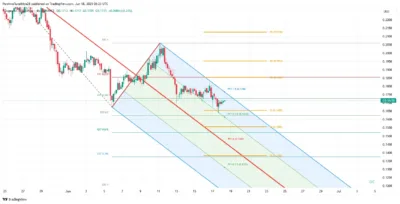 Dogecoin is experiencing ongoing selling pressure, struggling to break above the $0.1760 resistance level. Despite a minor intraday recovery, the token remains within a descending channel, a trend that has persisted throughout June.