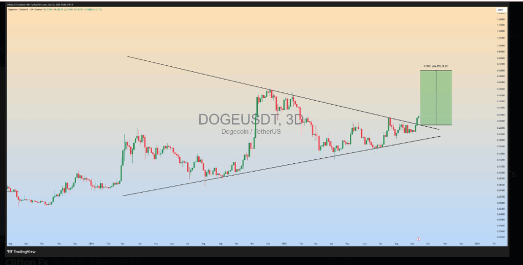 Market action indicates the existence of a long-term push past this resistance that could create space allowing the price to continue to grow. According to analyst Clifton, Dogecoin broke out of its 3-day symmetrical triangle with strong volume — expect a sharp bullish rally toward $0.30+ in coming weeksNevertheless, shoppers are needed to sustain the support range in order to sustain the breakout. The thin margin between support and resistance is an indication of the significance of near-term trading behavior.