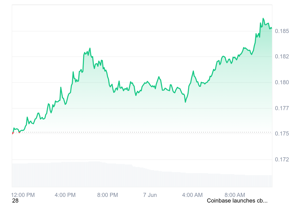 Currently, Dogecoin is trading at approximately $0.1869, marking a 4.89% increase over the last 24 hours.
