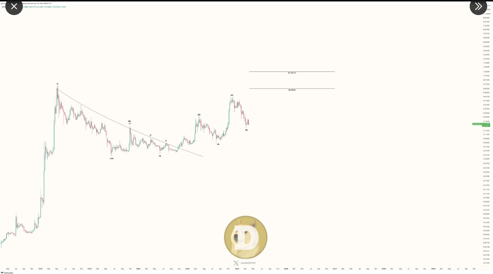 Analyst Javon Marks projects a long-term Dogecoin price target of $0.6533, representing a potential increase of over 270% from current levels. This prediction is based on historical price patterns and technical indicators.