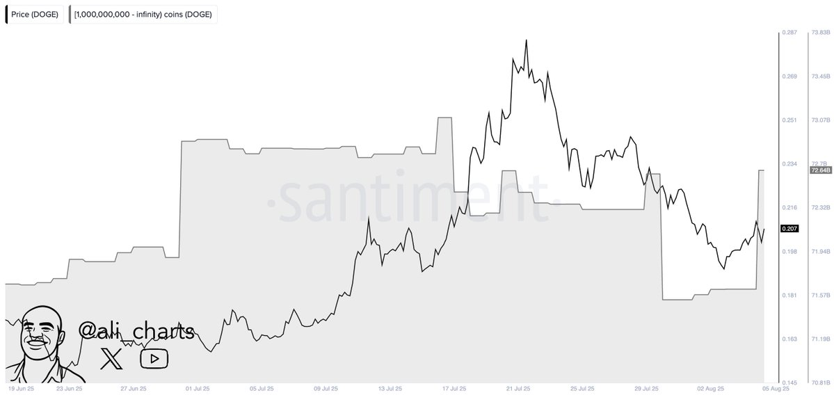 Dogecoin is once again capturing attention as over $1 billion in DOGE has changed hands within a single day. This sudden surge in buying activity, primarily driven by crypto whales, has ignited a wave of optimism throughout the market. Currently trading at $0.207, the meme coin demonstrates signs of renewed strength following weeks of volatility.