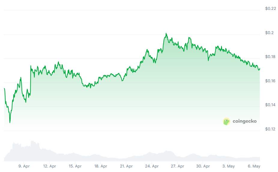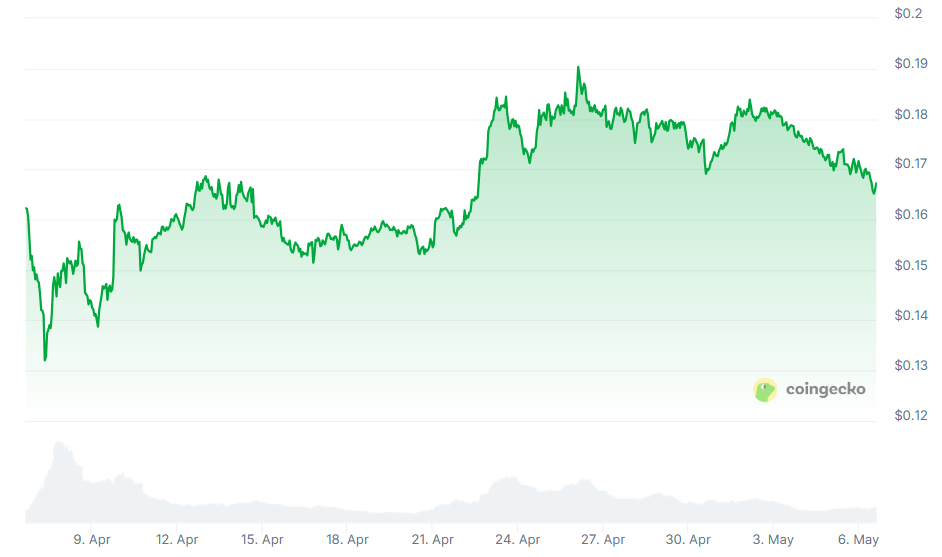 Since peaking above $0.43 in early February, Dogecoin has experienced a significant correction, trading around $0.16 at the time of writing. Despite this, it's still up a modest 4.4% in the past month, though price action remains largely sideways.