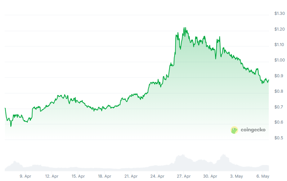 Worldcoin experienced a substantial rally in late April, rising from $0.58 to a peak of $1.22. However, it suffered a 22% decline in early May amidst controversy surrounding a Kenyan High Court decision to delete biometric data collected by the protocol.