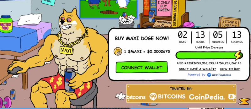 - Maxi Doge is an up-and-coming meme coin that’s dead-set on conquering the space and overthrowing Dogecoin. Its presale has raised $3.9M so far.