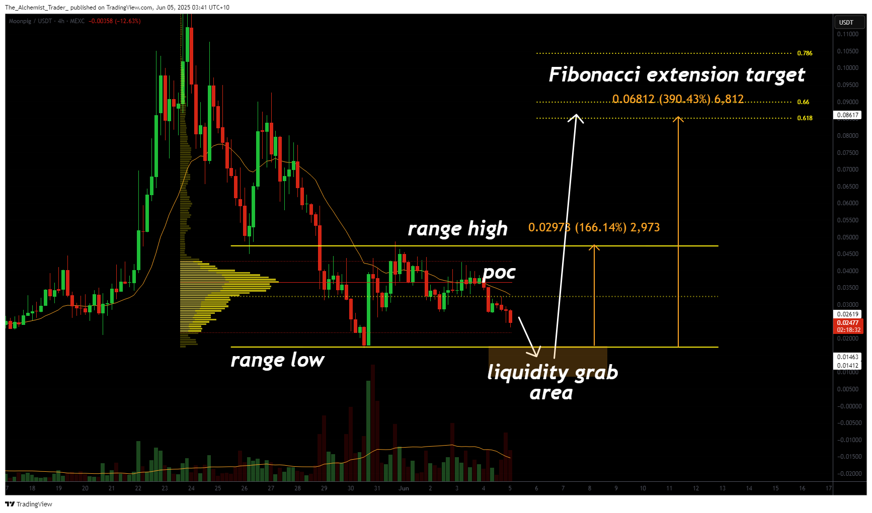 - Fibonacci Extension Target: Should the range high be decisively breached with strong momentum, the next potential target lies approximately 390% higher, based on Fibonacci extension projections.