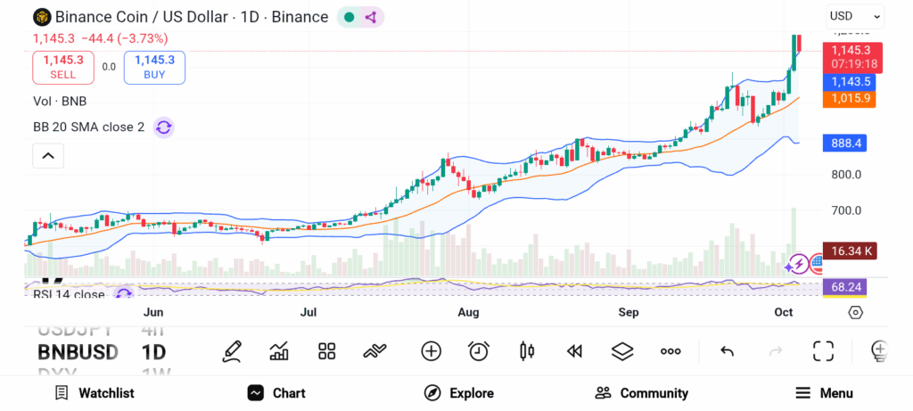 Binance Coin remains one of the strongest contenders in the crypto space. As the native token of the BNB Chain ecosystem and Binance exchange, BNB carries real utility. It powers DeFi applications, staking, and discounted trading fees on Binance, giving it strong market relevance. In September 2025, BNB recorded a remarkable 30% surge, signaling fresh bullish energy. That performance caught the attention of traders looking for sustainable growth.
