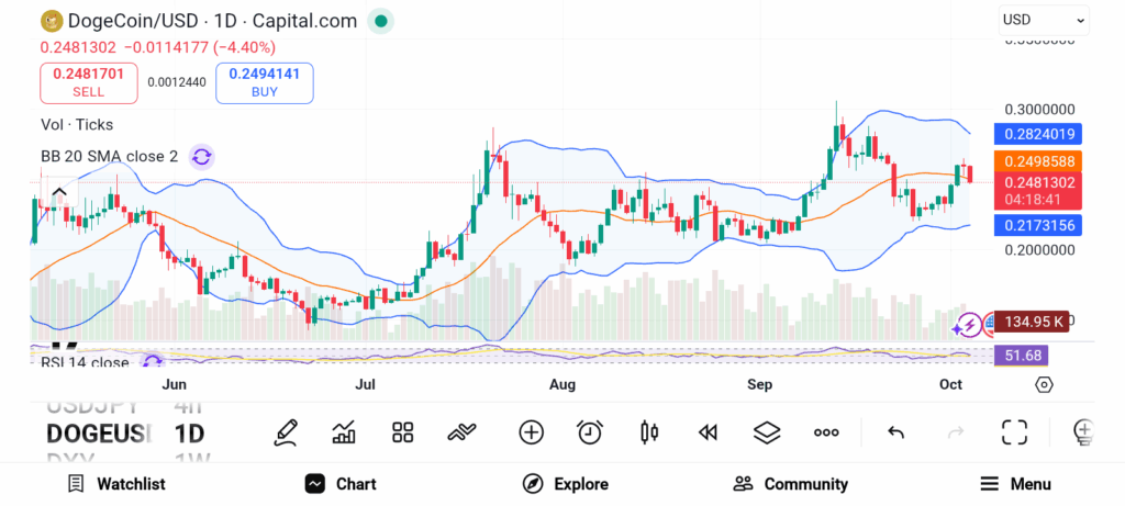 Dogecoin is the most recognizable meme coin in the market. Known for humor and community strength, the token often moves with social sentiment. In September 2025, DOGE gained over 21%, proving how quickly sentiment can fuel rallies. Analysts agree that traditional valuation models rarely apply to Dogecoin. Market enthusiasm, online discussions, and influencer comments often determine price direction.