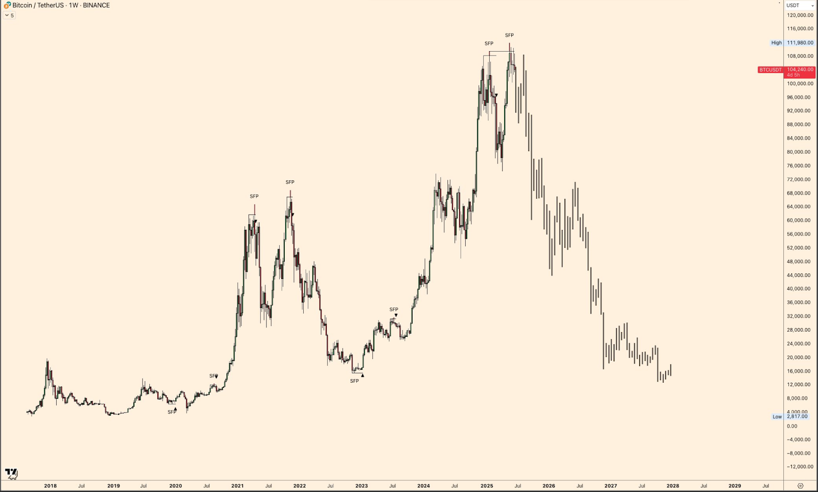An analyst has pointed out a pattern on the Bitcoin (BTC) weekly chart, highlighting Swing Failure Patterns. This analysis suggests these patterns may signal potential rallies or corrections.