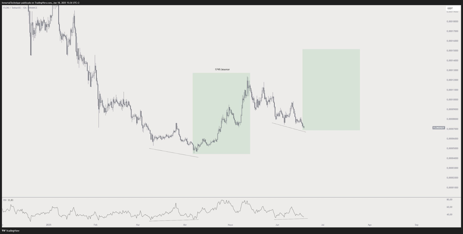 An analyst has noted a setup forming in the FLOKI (FLOKI) chart. Previously, FLOKI (FLOKI) experienced a bounce, and a similar structure appears to be unfolding again.