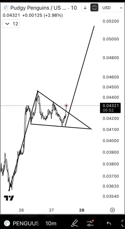 According to @ali_charts, PENGU appears poised for another surge, with $0.052 identified as the next key target. The breakout from an ascending triangle pattern further reinforces bullish sentiment and increases investor confidence.